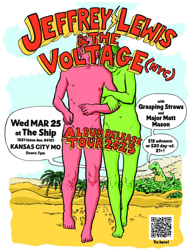 February 25, 2025February 25, 2025 majormattusa MMM Band show w/ Jeffrey Lewis and the Voltage + Grasping At Straws / Wednesday, March 26th @ The Ship (KCMO) Register on Eventbrite Share this: Click to share on X (Opens in new window) X Click to share on Facebook (Opens in new window) Facebook Like Loading... Related